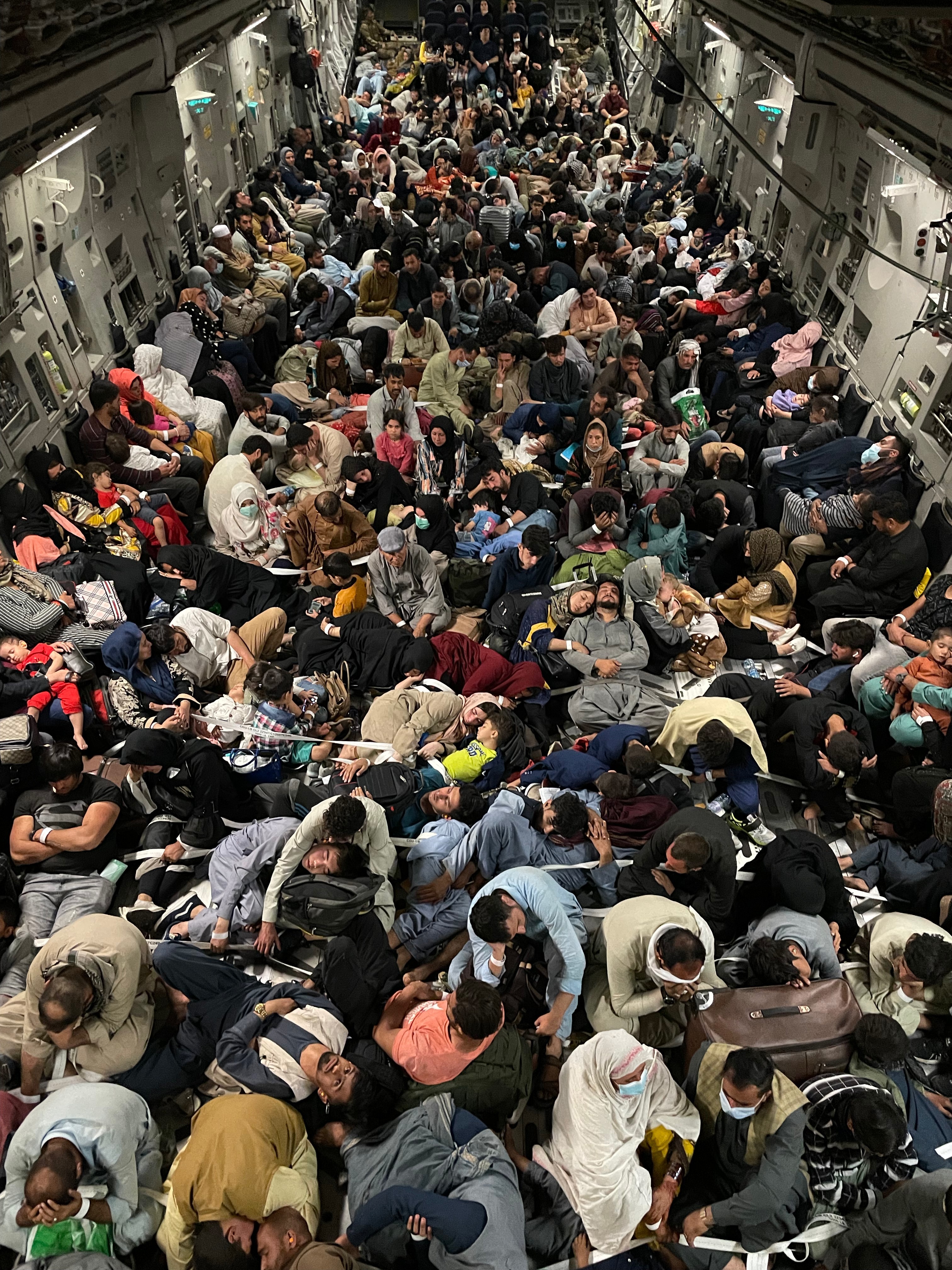 ‘There were no windows anywhere in the aircraft where we could at least peer through to gaze at one last time on the land and the earth that nurtured me to pay my last respects. I felt as I was being kidnapped, without having the chance to say goodbye to everything I ever knew in our country. One man started singing the Sarzameen-e-man which is our Afghan national song about our homeland. Most people started crying as the plane taxied away past the control tower.